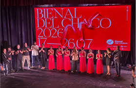 Para finalizar la ceremonia de apertura de la Bienal del Chaco, una acción artística cerró la jornada, como no podría ser de otra forma: Con el himno de esta edición 2026 compuesta por Alejandro Acosta y junto a la participación de Débora Monzón, Lourdes Orellanoz, Florencia Pared Ferrazzano, Pía Rolón, María de los Ángeles Solís y Daiana Soto, bailarinas del Ballet Ferrazzano, del Ballet Porfirio y del Ballet Contemporáneo del Chaco elencos de nuestra provincia que trabajaron juntos para esta gala de lanzamiento. Un momento de alto impacto y belleza para toda la audiencia con la sorpresiva aparición de Fabriciano facilitada por la IA.