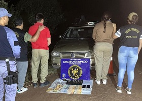 En el trayecto, los sospechosos se habían descartado de un envoltorio, que posteriormente fue recuperado, constatándose que contenía 41 bochitas de cocaína. Además, en poder de los mismos se secuestraron más de 170 mil pesos en efectivo y dos teléfonos celulares.